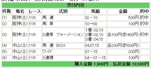 そういえばメインはスズカフェニックスとペールギュント2頭軸で買ってたんですよね。しかしマルカの斜行は酷かったね。あの右ムチ、新人なら兎も角・・・。